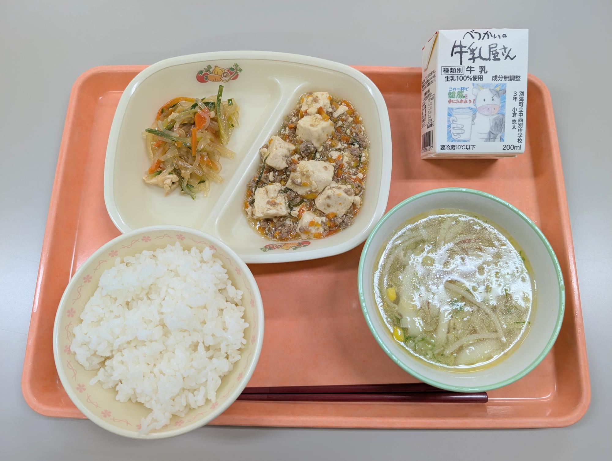 副食 マーボ豆腐・春雨サラダ・塩野菜スープ