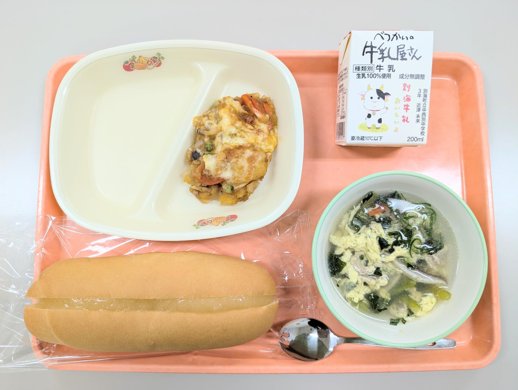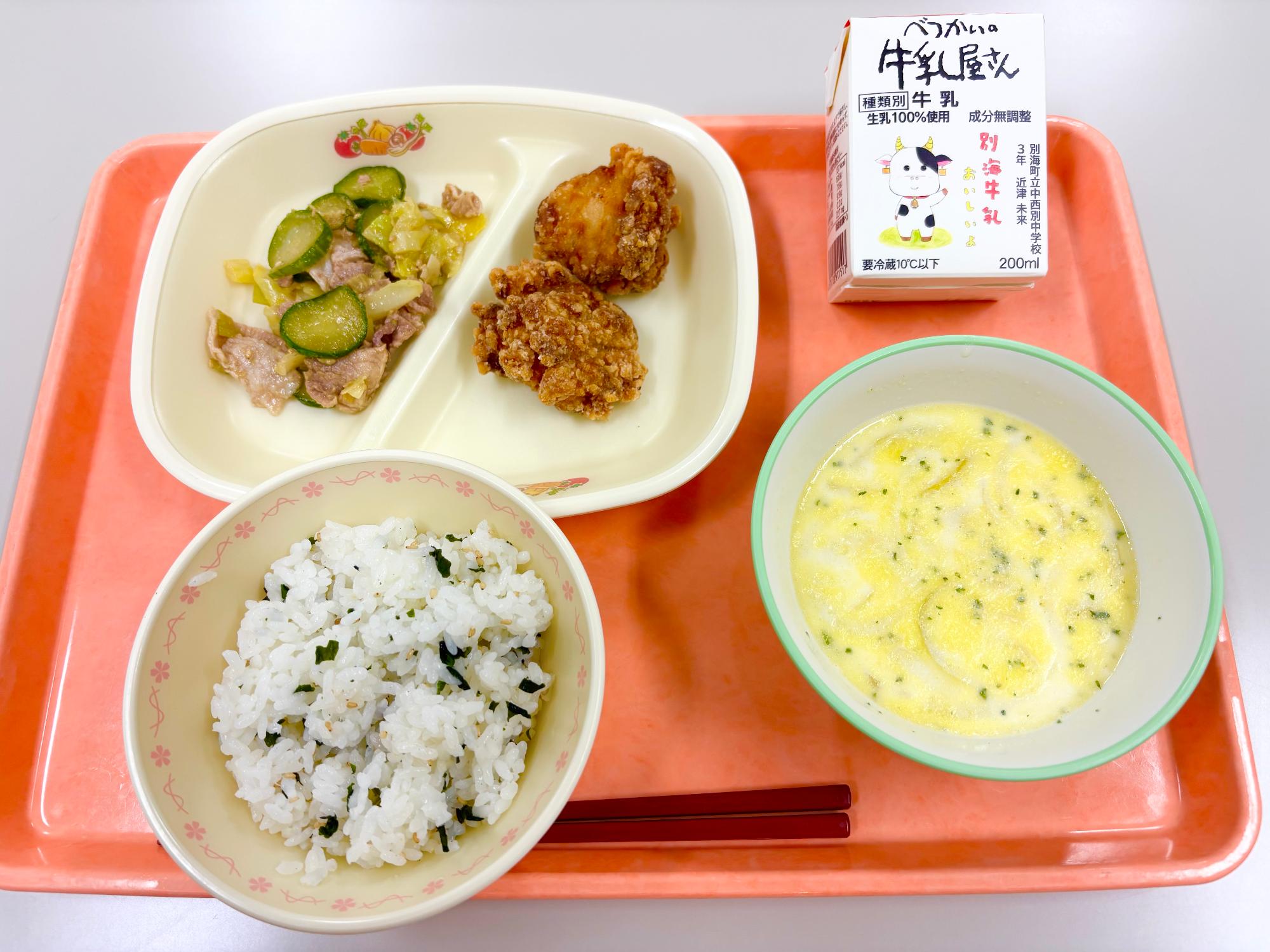 今日の給食は、弟子屈中学校の3年生が、考案してくれた献立の中の一つです。