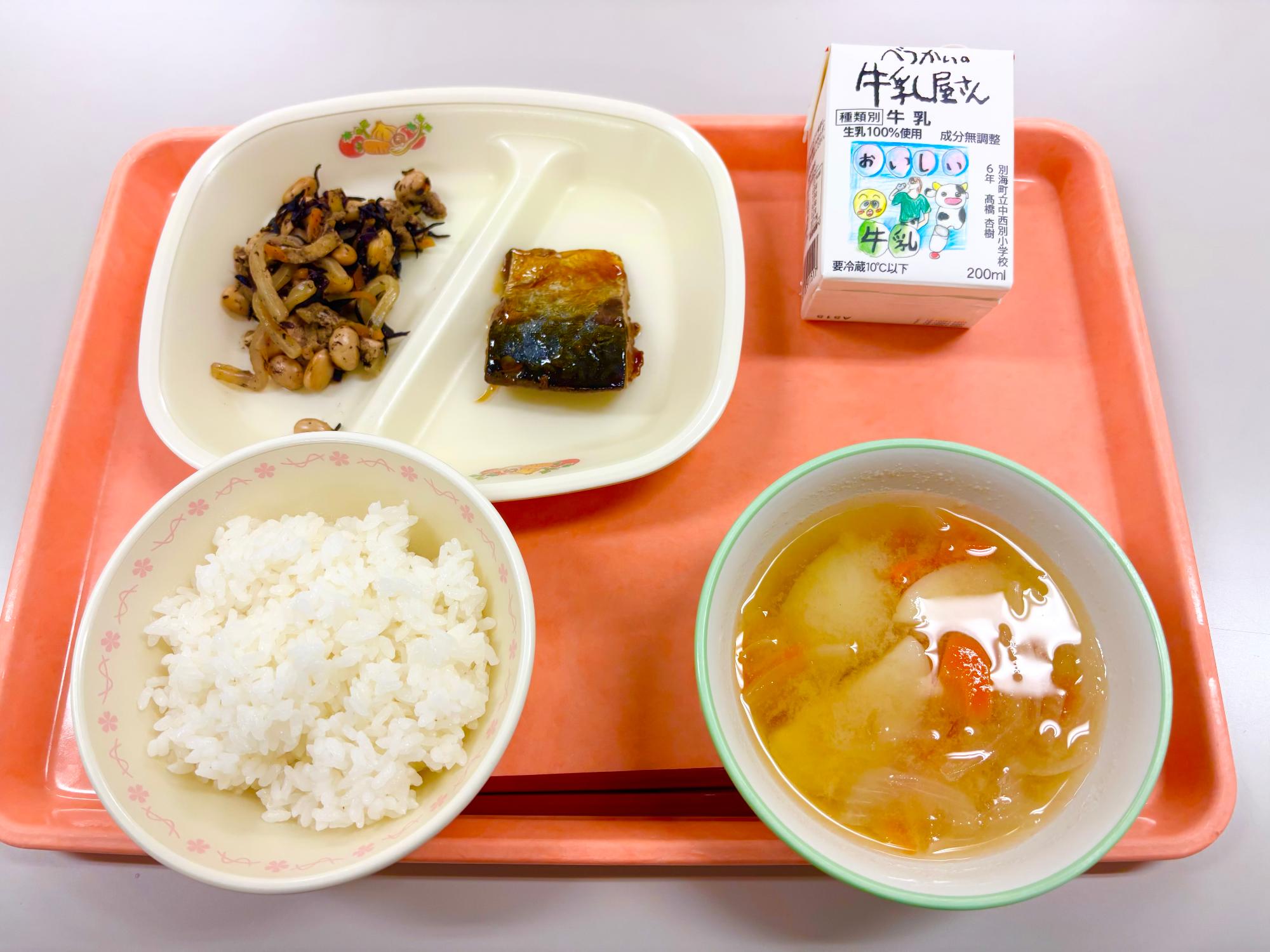 副食 サバの生姜煮・ひじきの煮物・イモのみそ汁