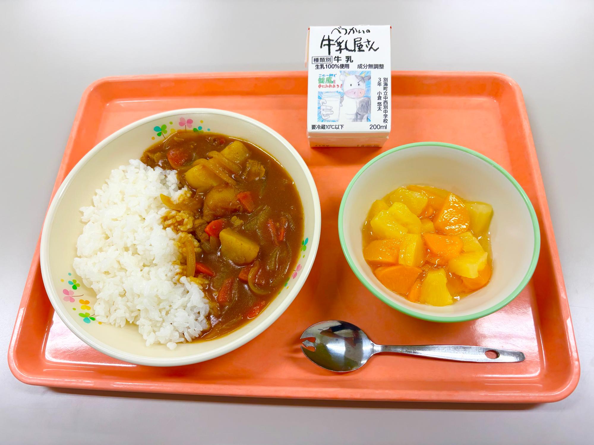 子ども達に大人気のカレーで、今月は「ポークカレー」です。