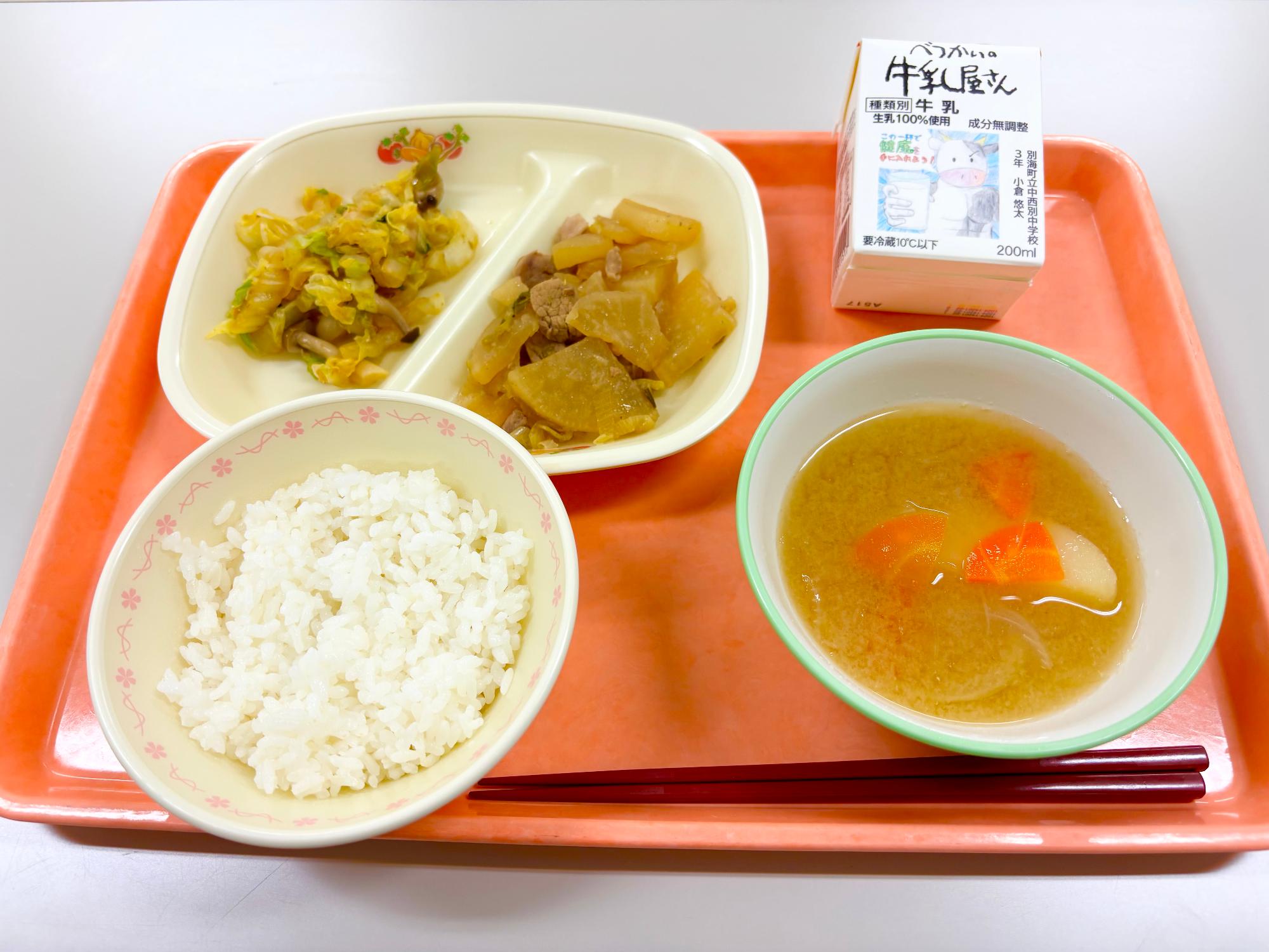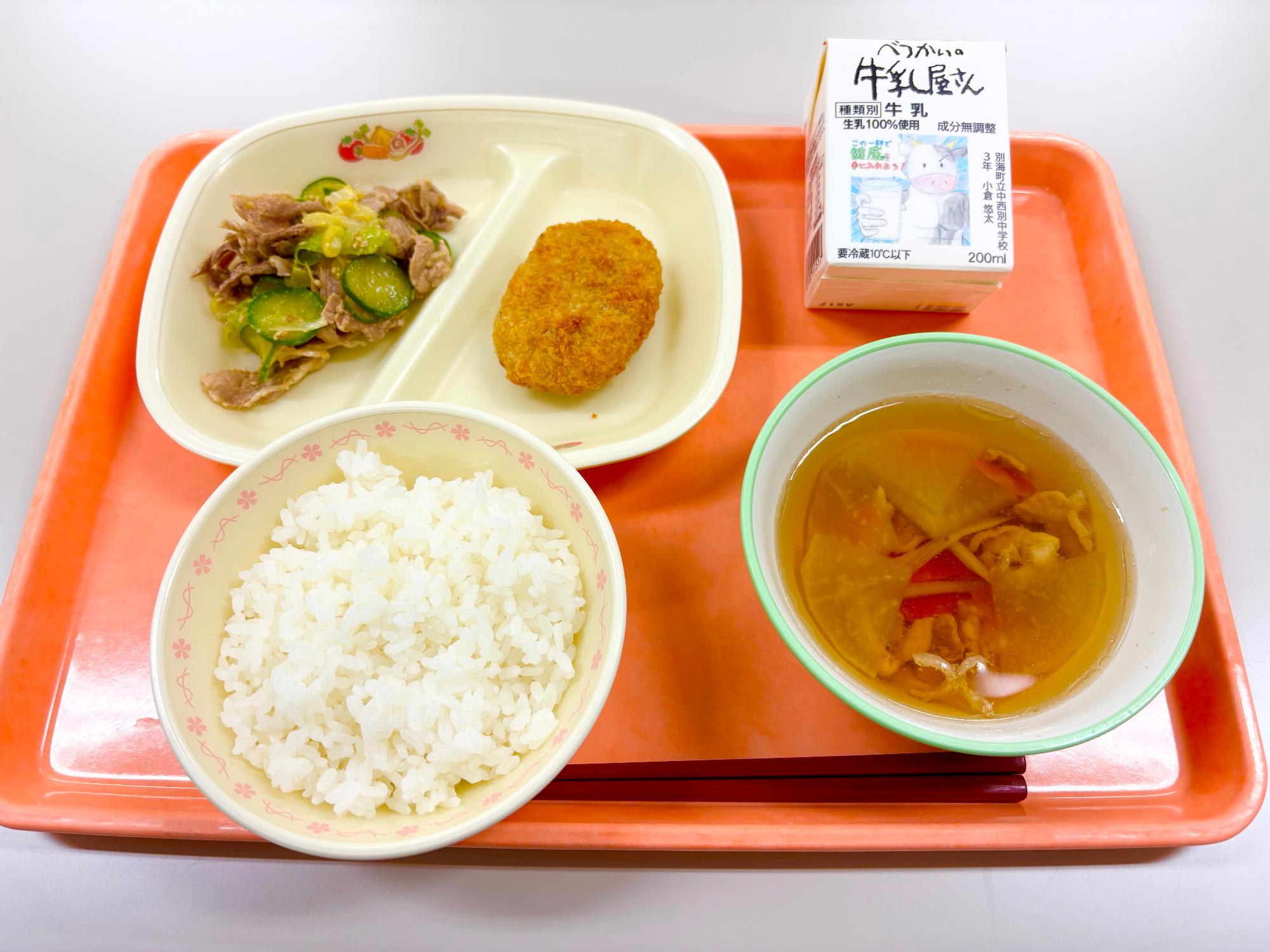 フルーツヨーグルト和えには、みかん・もも・バナナ・パイナップルなど4種類のフルーツを生クリームと砂糖で和えた手作り料理となっております。また、来週月曜日の給食では、「1食分の献立を提案しよう」をテーマに弟子屈中学校の生徒が考案したメニューを提供いたします。テーマは、「秋の味覚」だそうです。報道機関が取材してくれます。