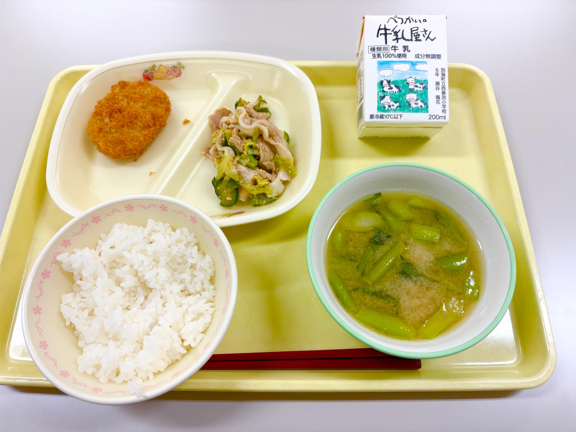 副食 十勝大豆コロッケ・韓国風サラダ・小松菜のみそ汁
