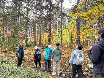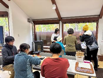 10月18日、川湯ビジターセンターで「新しい森林浴のすすめ」を開催し、11人が参加しました。北海道認定木育マイスター・森林セラピストの井出千種さん、Healing Salon Flowの北林さくらさんを講師にお迎えし、アカエゾマツの森の散策や、枝葉を使用したワークショップを行いました。