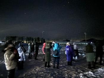 「てしかがの星空楽しみ方講座第11回~日本一の星空を見よう~」を4月17日、川湯ふるさと館と硫黄山で実施しました。町内在住の馬場一郎さん、綾奈さんを講師にお迎えし、34人が参加しました。