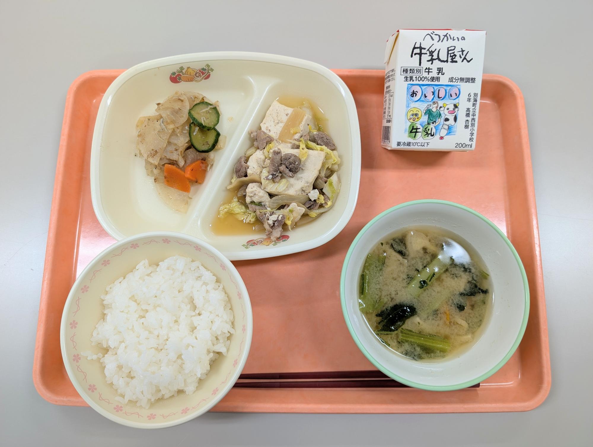 副食 肉豆腐・大根とちりめんじゃこの和え物・小松菜のみそ汁